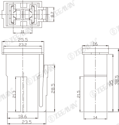 產(chǎn)品詳情 FLM-KP 慢熔保險絲 FLM-KP 慢熔保險絲 根據(jù)使用狀況,保險絲特性可能改變。 產(chǎn)品描述 額定電壓:小于直流32V 致斷容量: 1,000A@32V DC 使用溫度: -40℃~+125℃ 材質(zhì):1、銅合金2、塑膠2、陶瓷 執(zhí)行標準: JASO D612 選購 : 全系列FLM-KP 45FLM-KP 65FLM-KP 75 詢價 產(chǎn)品介紹 熔斷特性 額定電流% 熔斷時間 最小 最大 110% 4 hrs --- 200% 5 s 60 s 350% 0.2 s 7 s 600% 0.04 s 1 s 保險絲目錄 零部件編號 額定電流(A) 外殼顏色 FLM-KP 45 45 A 紅色 FLM-KP 65 65 A 黑色 FLM-KP 75 75 A 灰色